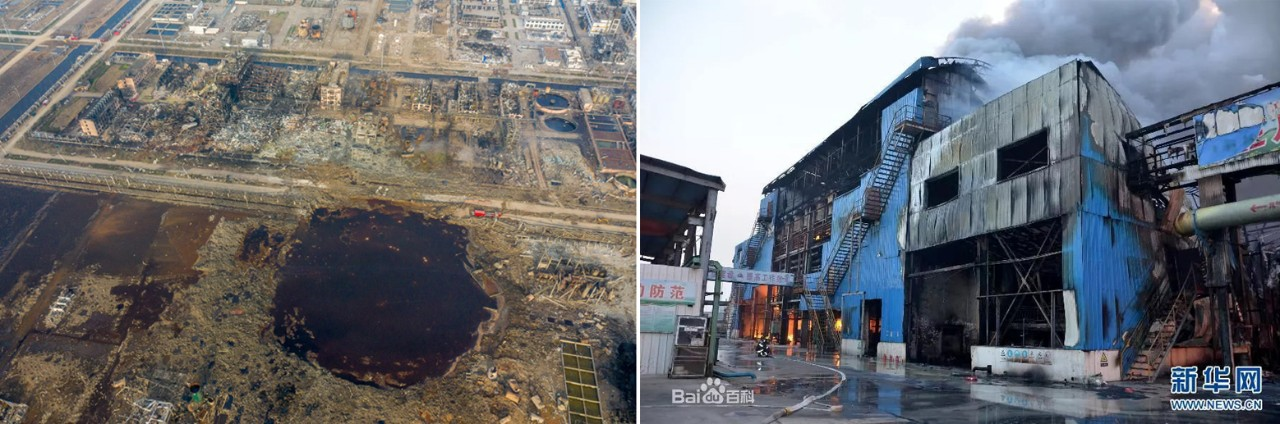 (左)江苏响水“3·21”特别重大爆炸事故与(右)江苏聚鑫生物“12·9”重大爆炸事故