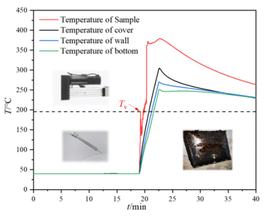 图3 电池材料在TAC-500A中的热分解温升曲线