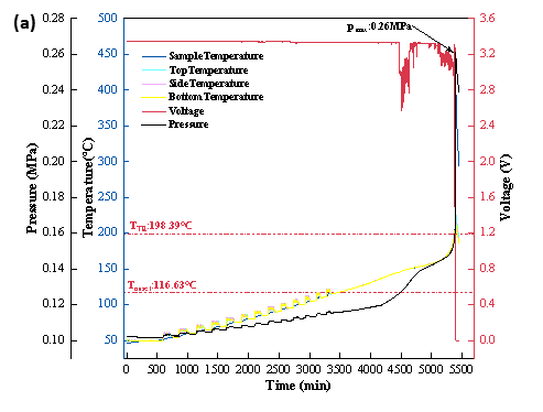 在保障实验绝热性能与温度数据测量准确性的基础上,BAC-800B创新性地在仪器绝热层外增加了一层压力容器,符合国标GB 150内压力容器标准。该设计可将实验过程中产生的气体完全封闭,实现温度测试与产气测试(包括产气压力、产气速率、产气量等)的同步进行,使单次实验即可获取传统多组实验才能得到的数据,有效保障了数据的统一性。