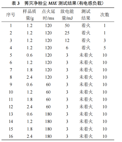 基于此,本研究采用杭州仰仪科技粉尘云最小点火能测试仪MIE-3000A、粉尘云最低着火温度测试仪MITC-1000A、粉尘层最低着火温度测试仪MITL-450A 、20L球形爆炸测试仪等多款设备对莠灭净的粉尘爆炸特性进行了系统性研究,并结合技术规范的要求提出了相应预防措施,为相关企业的生产安全提供了关键参数与预防措施建议。
