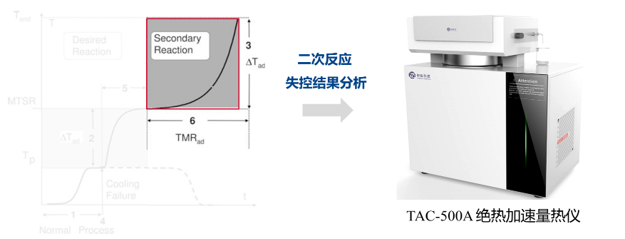 绝热加速量热仪是在实验室条件下模拟潜在二次反应风险的专业测试仪器,能精确测得样品热分解初始温度、绝热分解过程中温度和压力随时间的变化曲线, 尤其是能给出DTA和DSC等无法给出的物质在热分解初期的压力缓慢变化过程。