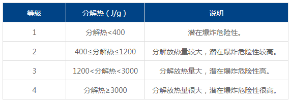 原国家安监总局于2017年发布了《关于加强精细化工反应安全风险评估工作的指导意见》,其中明确了对化工反应中涉及的原料、中间物料、产品等进行热稳定性测试,对化学反应过程开展热力学和动力学分析,根据反应热、绝热温升等参数评估反应危险等级,根据最大反应速率到达时间等参数评估反应失控的可能性,结合相关反应温度参数进行多因素危险度评估,确定反应工艺危险度等级的要求和建议。